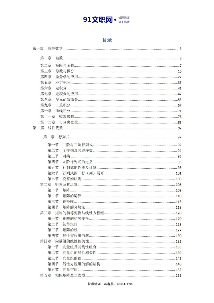 七、解放军文职考试数学3+化学专业——数学3+化学专业讲义及模拟题