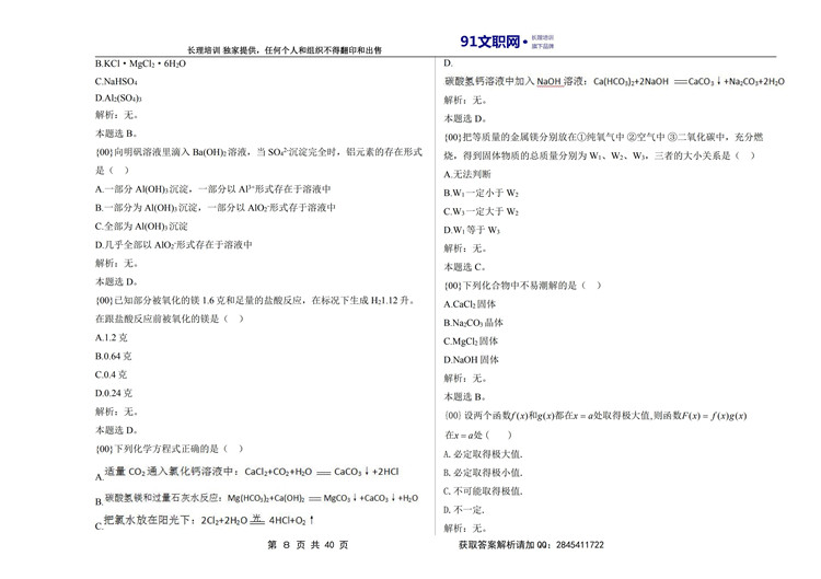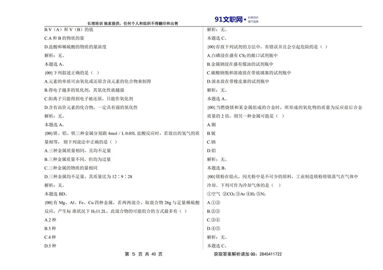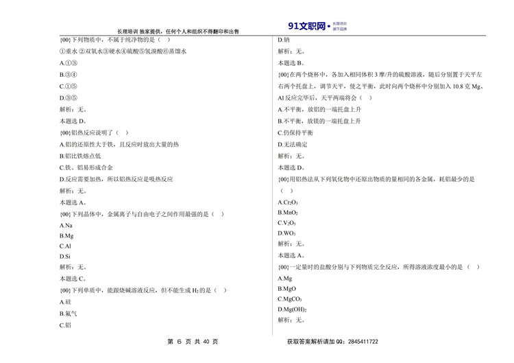 六、解放军文职考试数学3+化学专业岗位能力科目讲义及模拟题