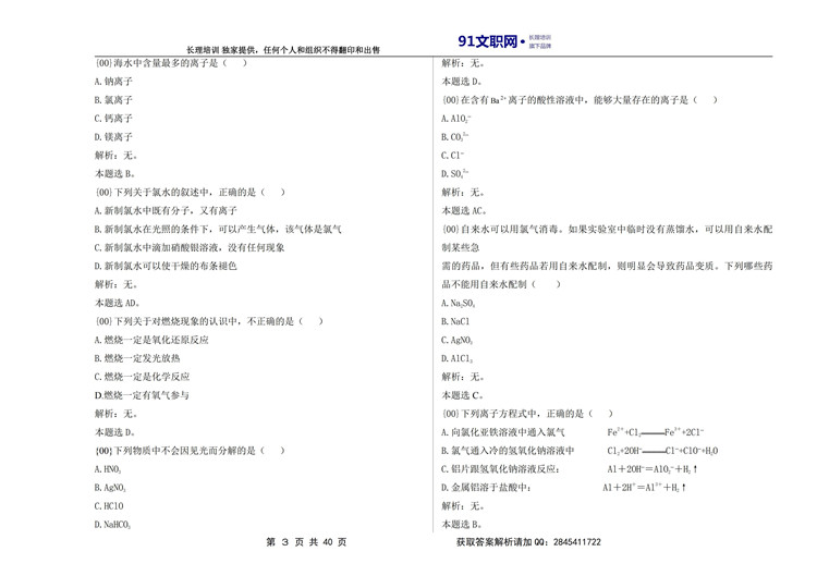 化学部分——化学应用讲义及模拟题