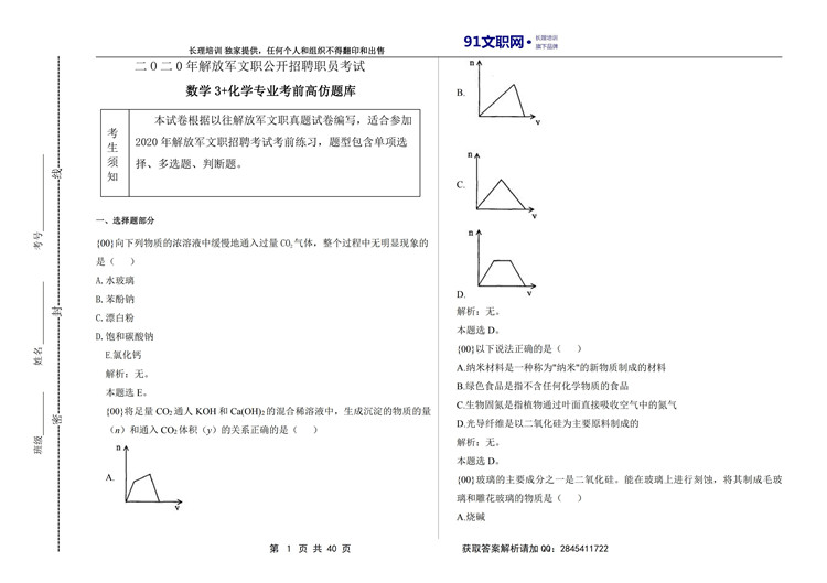 八、解放军文职考试数学3+化学专业面试技巧及模拟题