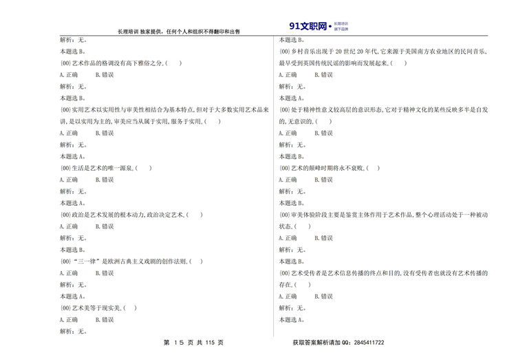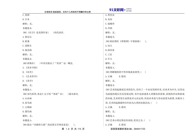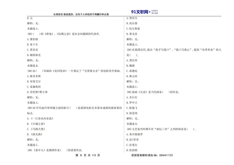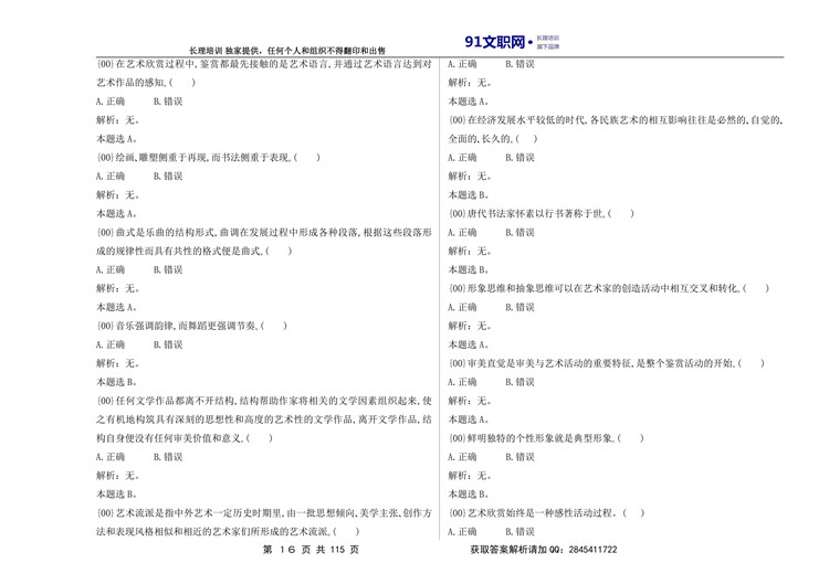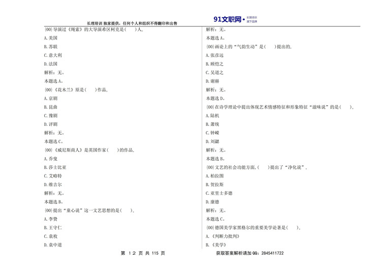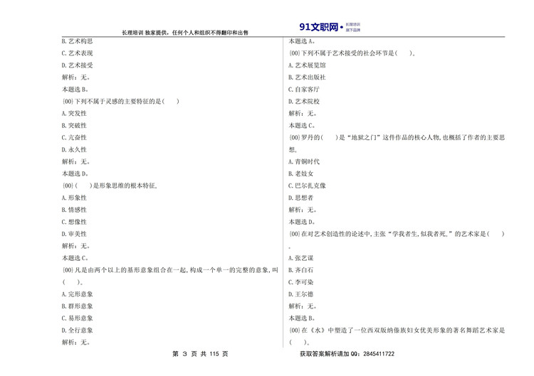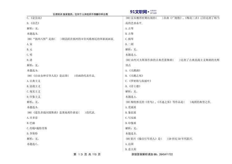 一、解放军文职考试艺术类历年真题汇编