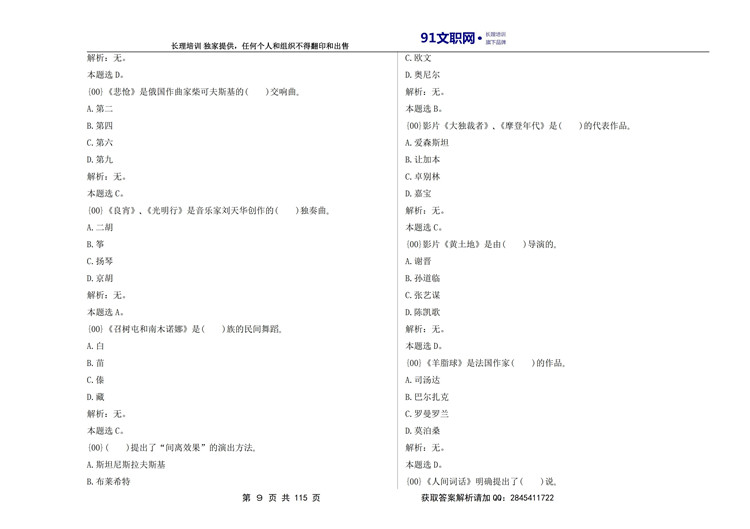 七、解放军文职考试艺术类专业——舞蹈专业讲义及模拟题