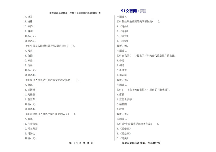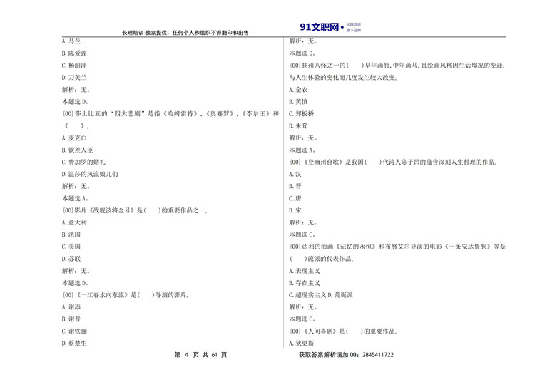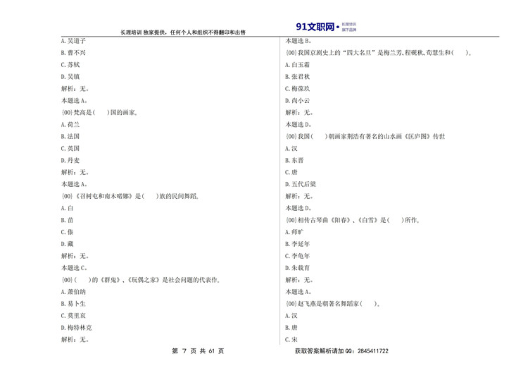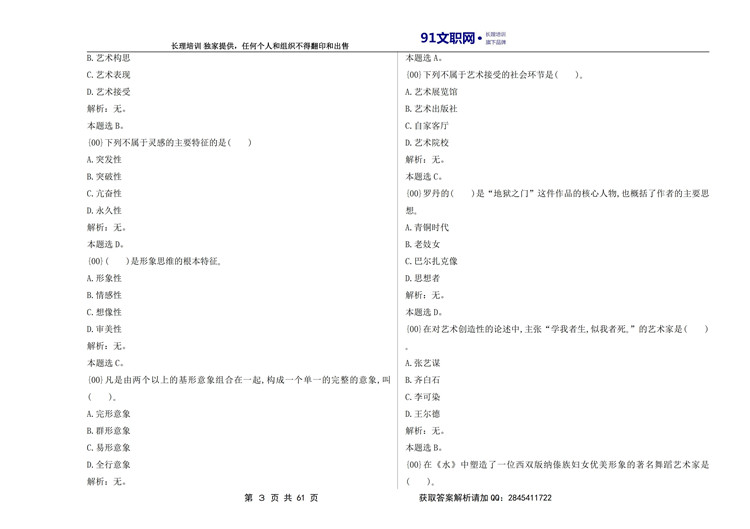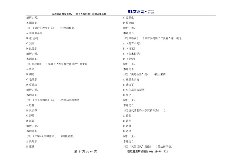 六、解放军文职考试艺术类专业岗位能力科目讲义及模拟题