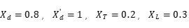 无限大系统母线电压为U=1, 输送功率为Po=0.8,已知在此 运行方式下,空载电势
