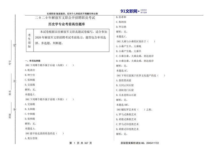 六、解放军文职考试历史学类专业岗位能力科目讲义及模拟题