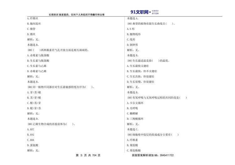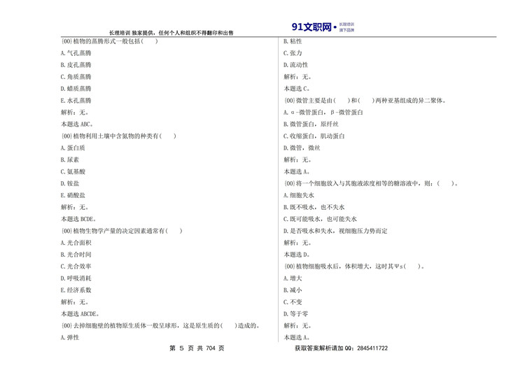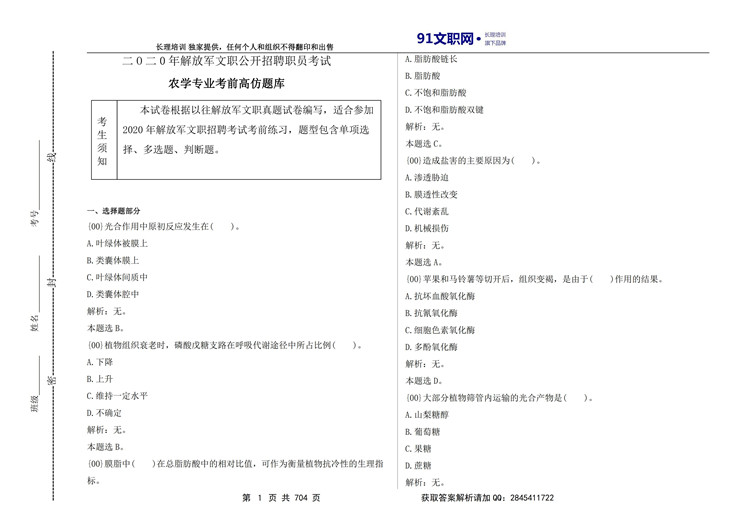 七、解放军文职考试农学类专业讲义及模拟题