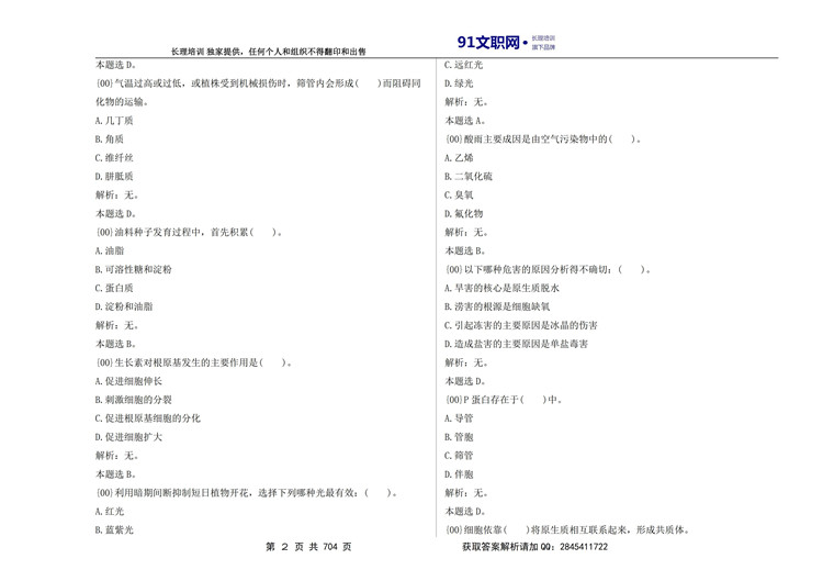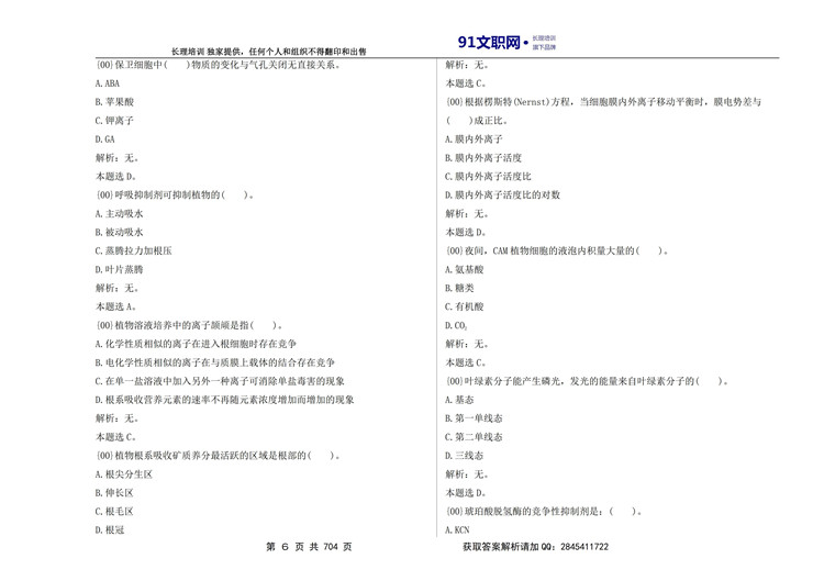 六、解放军文职考试农学类专业岗位能力科目讲义及模拟题