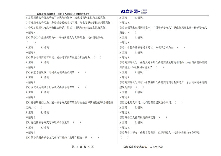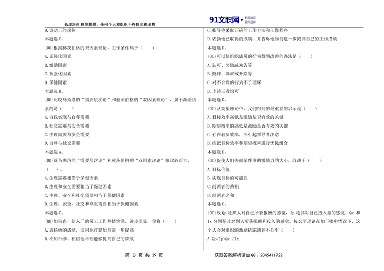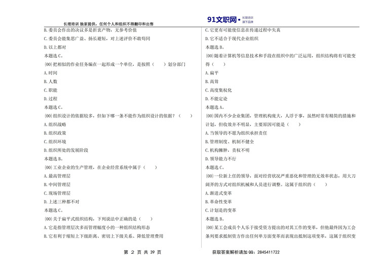 档案专业——管理学讲义及模拟题