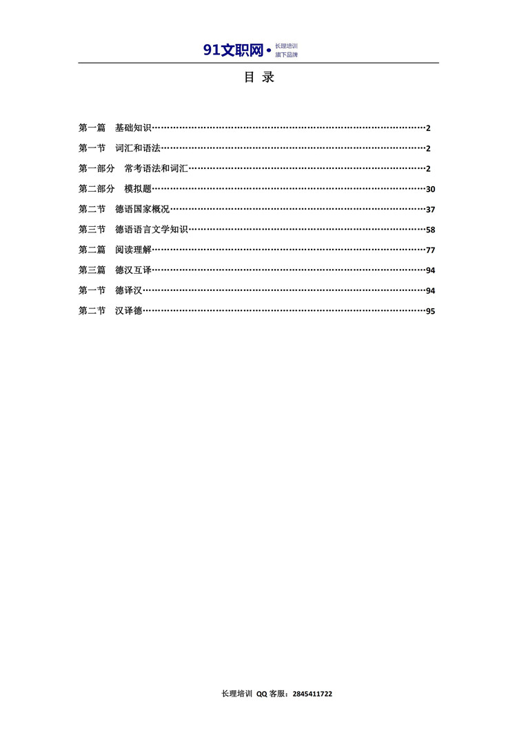 七、解放军文职考试外国语言文学类专业——德语专业讲义及模拟题