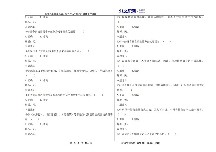七、解放军文职考试文学类——汉语言文学专业讲义及模拟题