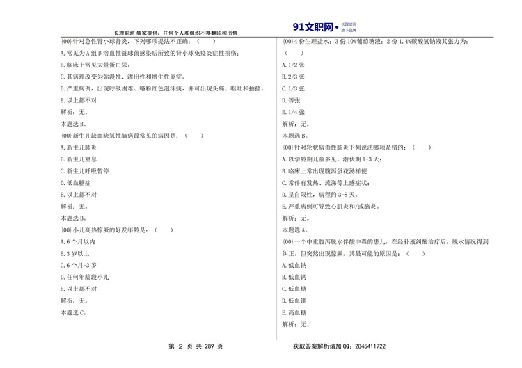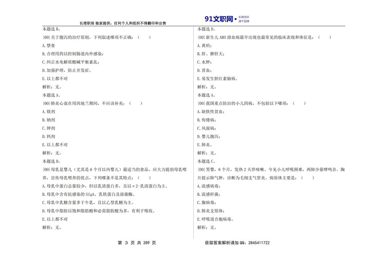 七、解放军文职考试医学类专业——临床医学专业讲义及模拟题
